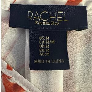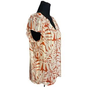 Rachel Rachel Roy Orange and White Pleated Front Split Neck Blouse Size M