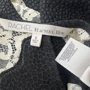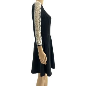 Rachel Rachel Roy SIZE 6 Black Pebbled Cream Lace 3/4 Sleeve Fit & Flare Mini Dress