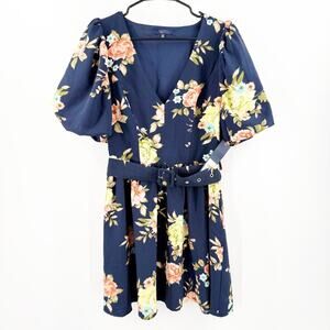 Rachel Rachel Roy Valeria Dress Size 8 Navy Bloom Floral Mini NWT Belt Cocktail