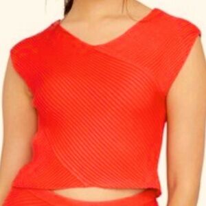 Rachel Rachel Roy Womens Ribbed trim Pullover crop Top Vibrant Red Medium