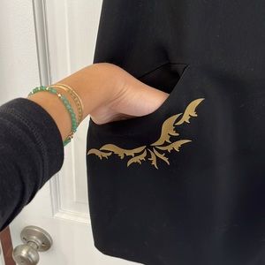 Rachel Rachel Roy black shift dress with pockets and gold metallic detail
