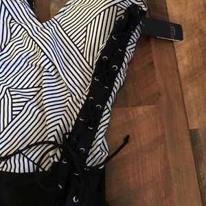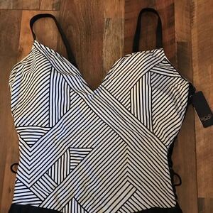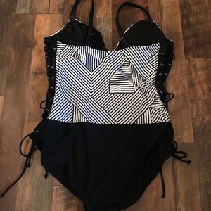 Rachel Rachel Roy one piece women’s swimsuit bathing suit black white stripe geometric pattern- Size 4X