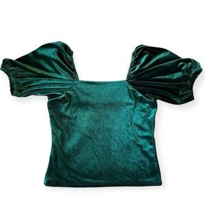 Green velvet top with puff sleeves, double lined and feels luxurious. In excellent condition.
