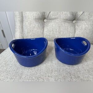 Rachel Ray SET of 2 Blue Stoneware Ramekin Double Handle 10oz Baking Dishes.