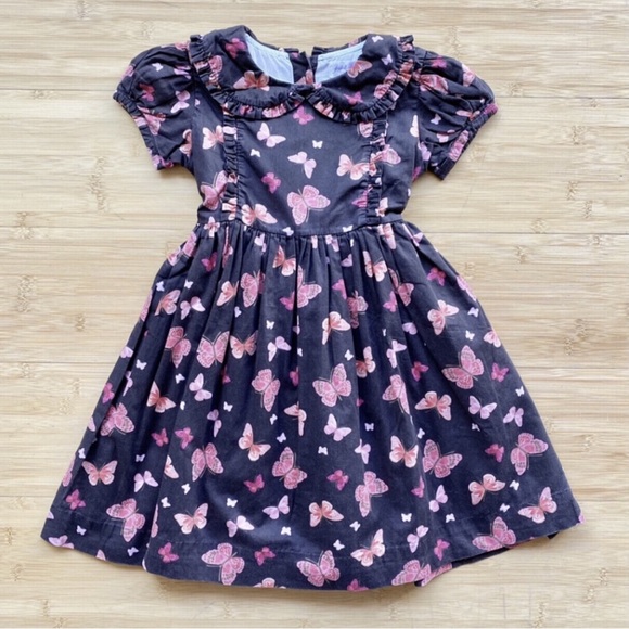 Brown and purple butterfly dress featuring a Peter Pan Collar. This is the UK brand that Kate Middleton dresses Princess Charlotte in.