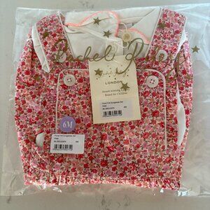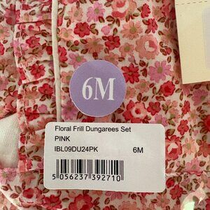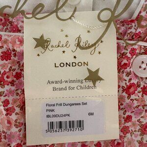 Rachel Riley Floral Frill Dungarees Set Overalls in Pink and Red, 6M, NWT