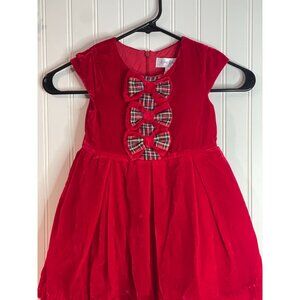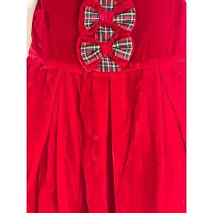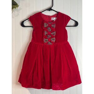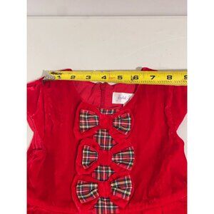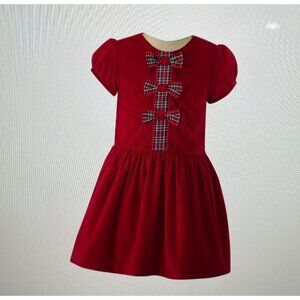 Rachel Riley Girls Red Velvet Dress With Plaid Bow Detail Size 3Y $155