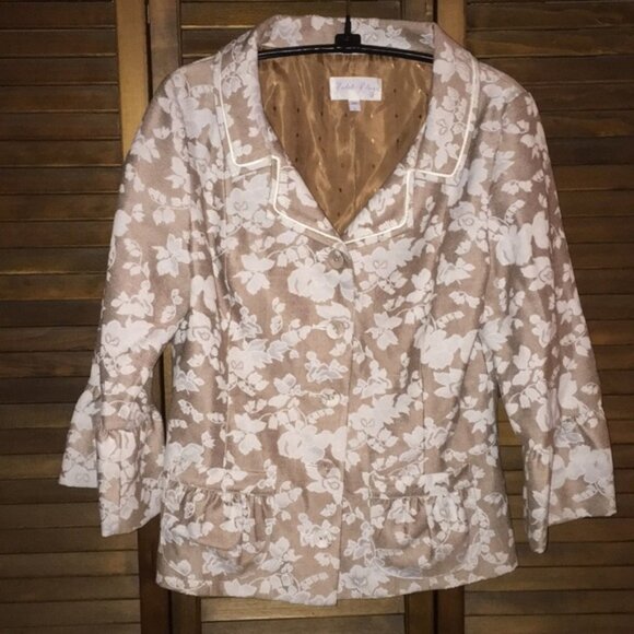 Feminine jacket with bell sleeves. 18” across the bust, European size 38. Like new condition.