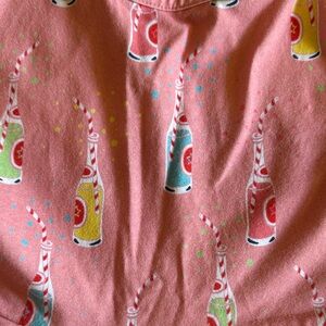 Charming pink dress with vibrant pattern. Sleeveless and playful design.