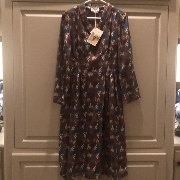 It is new with tags. Pretty flowered pattern. Rachel Riley is very high quality. Dress is 100 percent silk.
