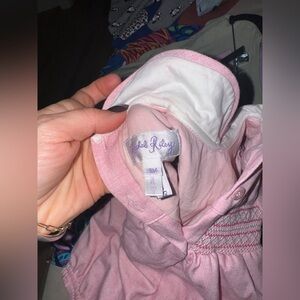 Rachel Riley smocked romper baby girl shortall peter pan collar embroidered