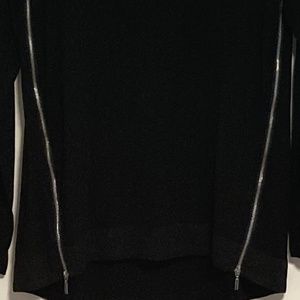 Rachel Roy long sleeve black shirt with front zipper detail.