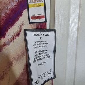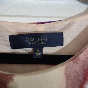 Elegant dress by Rachel Roy with abstract patterns. Features shades of pink, burgundy, and cream. Maxi, size M.