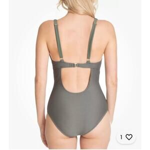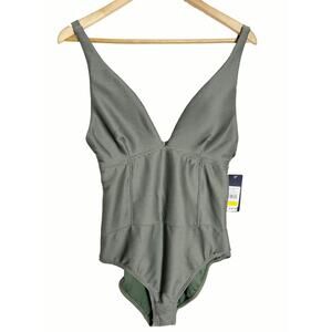Rachel Roy Army Green Ribbed One Piece Plunge Swimsuit Size Large