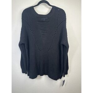 Keywords: Rachel Roy sweater, black sweater, knit sweater, statement sweater, XXL sweater, women's sweater, cotton blend sweater, long sleeve sweater, crew neck sweater, casual sweater, contemporary sweater, cut out sweater