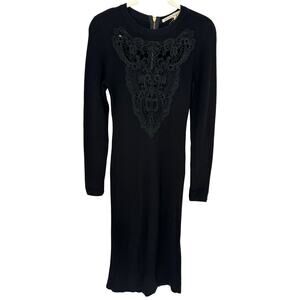 Rachel Roy Black Lace Accent Midi Sweater Dress Long Sleeve Winter Party Vacay S