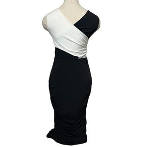 Rachel Roy Black and White ColorBlock Criss Cross Ruched Midi Dress