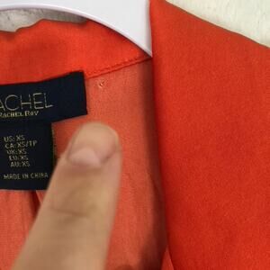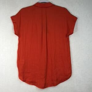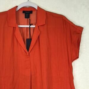 Rachel Roy Blouse XS Orange Satin Popover V Neck Short Sleeve Silky Hi Low Flowy Career Corp Church