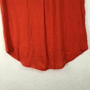 Rachel Roy Blouse XS Orange Satin Popover V Neck Short Sleeve Silky Hi Low Flowy