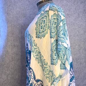 Rachel Roy Boho Kimono Beach Cover Up in Blue Paisley Design, One Size Fits All