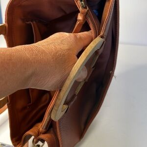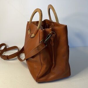Rachel Roy Brown Whiskey Leather Bag With Wooden Handles and Crossbody Strap