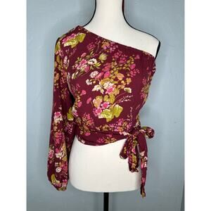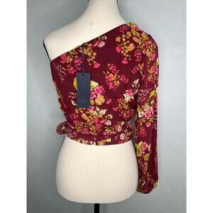 Rachel Roy Burgundy Floral Cropped One Shoulder Women’s Top