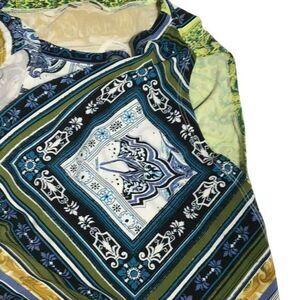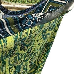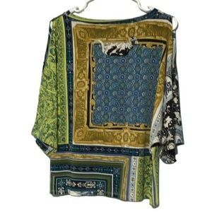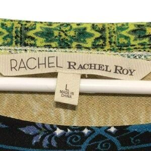 Rachel Roy cold shoulder top in vibrant green and blue, ideal for relaxed style.