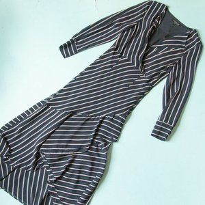Rachel Roy Collection Navy Blue White Striped Long Sleeve Midi Length Dress Sz 6