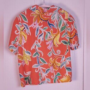 Rachel Roy Colorful Linen Blend Cropped Button Front Blouse Size Medium Tropical
