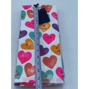 Brand new with tags Rachel Roy Conversation Hearts Valentine’s Day Set of 3 Kitchen Towels.