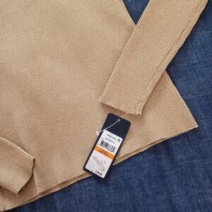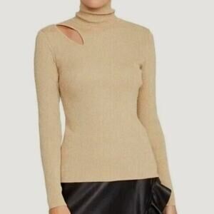 Rachel Roy Cut Out Sweater Fitted Ribbed Gold Metallic S NWT
