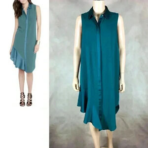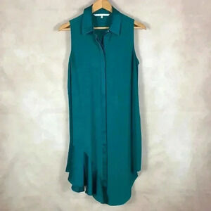 Rachel Roy Emerald Green Flounce-Hem Shirtdress Size MEDIUM