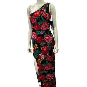 Rachel Roy Floral Print One-Shoulder Maxi Dress With Side Slit Md NWT
