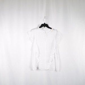 Rachel Roy Gemma Cotton Ruffled Top, White