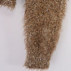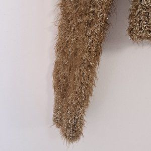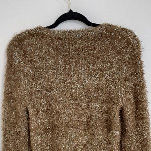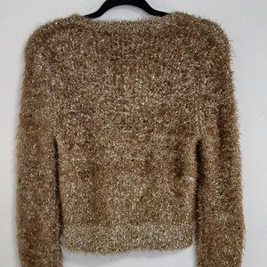 Rachel Roy Gold Long Sleeve Jewel Neck Top Size Misses XS is previously loved and in excellent condition. No flaws found. 56% Nylon/23% Polyester/21% Metallic. Measurements: Shoulder to shoulder laid flat - 18', Pit to Pit - 19', Sweater Length from Shoulder to Hem - 20', Sleeve Length - 20".