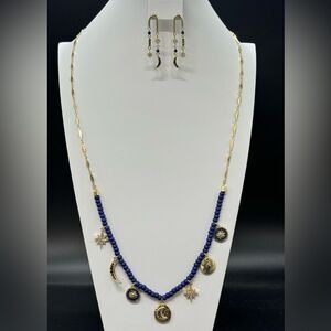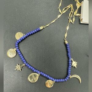 Rachel Roy Gold Plated Navy Beaded Moon & Stars Crystal Dangle Charm Necklace