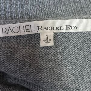 Rachel Roy Gray Gold Cashmere Metallic Striped Crew Neck Pullover Sweater Top S