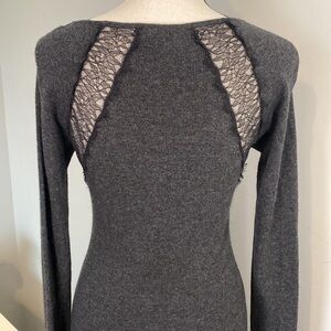 Rachel Roy Gray Lace Fall Winter Rabbit Hair Cotton Blend Slit Maxi Dress