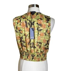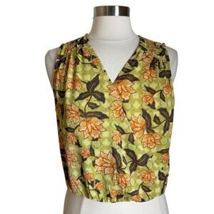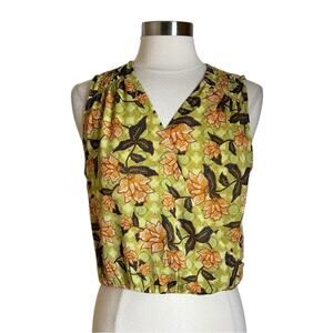 Rachel Roy Green Floral Print Faux Wrap Sleeveless Blouse Top Women’s Medium New