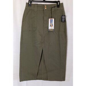 Rachel Roy Intrigue Olive Green Midi Skirt Sz 6 NWT Stretch Front Split Sexy