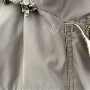 Great jacket, water resistant. There is a small stain (picture included) but you don’t see it when worn due to the way the jacket falls