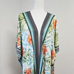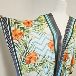 Rachel Roy Kimono Duster One Size Stretchy Open Front Floral Resort Vacation NWT