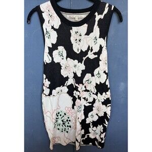 Rachel Roy Knit Dress Size Medium Stretch Floral Print Sleeveless Black Wedding