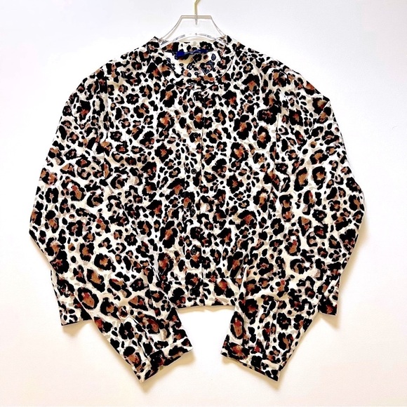 Rachel Roy Leopard Blouse Jacket Shirt Top Cropped NWT Brown Size Extra Large XL