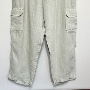 Rachel Roy Linen Cargo Capri Pants Womens L Green Pockets Lightweight Lagenlook