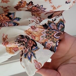 Rachel Roy Linen Square Ruffled Neck Pirate Poplin Flower Paisley Peasant Blouse