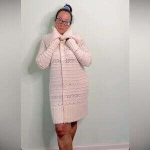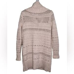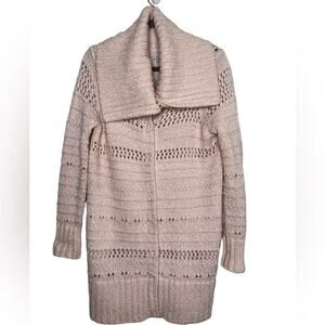 Rachel Roy Long Sweater Coat Beige Wide Collar Size Small