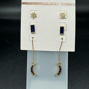 Rachel Roy Manifest 3 Pairs Crystal Moon and Stars Stud & Dangling Earrings