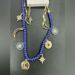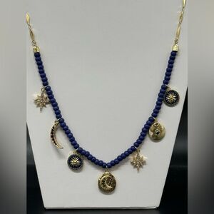 Rachel Roy Manifest Gold Plated Navy Beaded Moon/Stars Crystal Dangle Neck & Ear