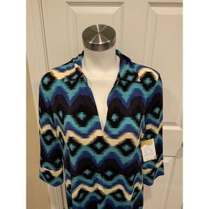 Rachel Roy Multi Blue Patterned "Desert Bloom Lapis Comb" Dress, Size XL, NWT!